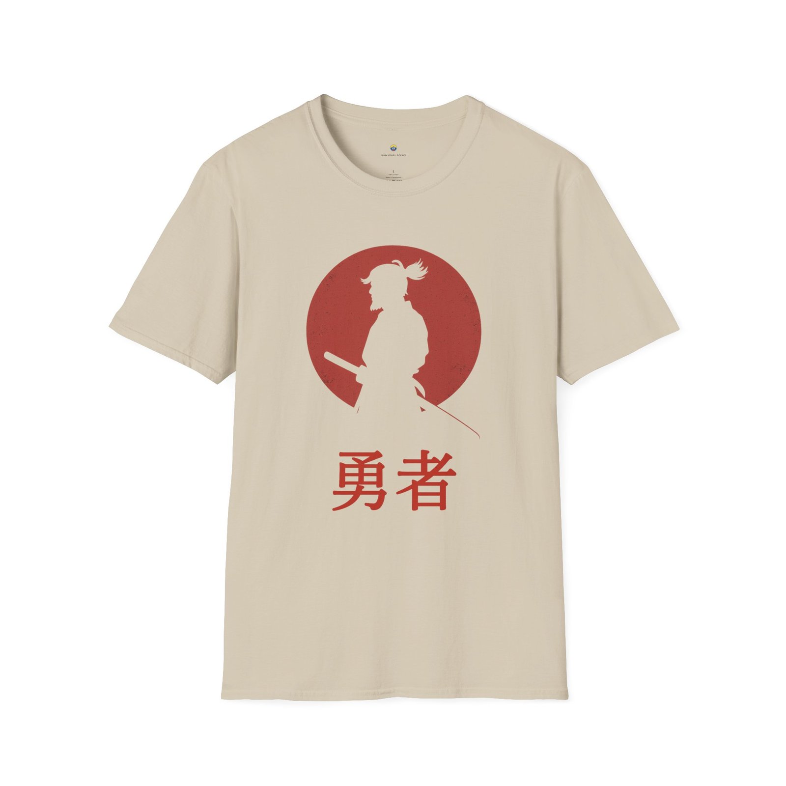 Affirmez votre force intérieure avec ce T-shirt Unisexe Samouraï Courageux, mettant en scène la silhouette d’un guerrier japonais se tenant fièrement devant un grand soleil rouge, symbole emblématique du Japon. Le design minimaliste et puissant est accompagné du kanji 勇者, qui signifie « courageux » ou « héros », renforçant le message de bravoure, d’honneur et de détermination.