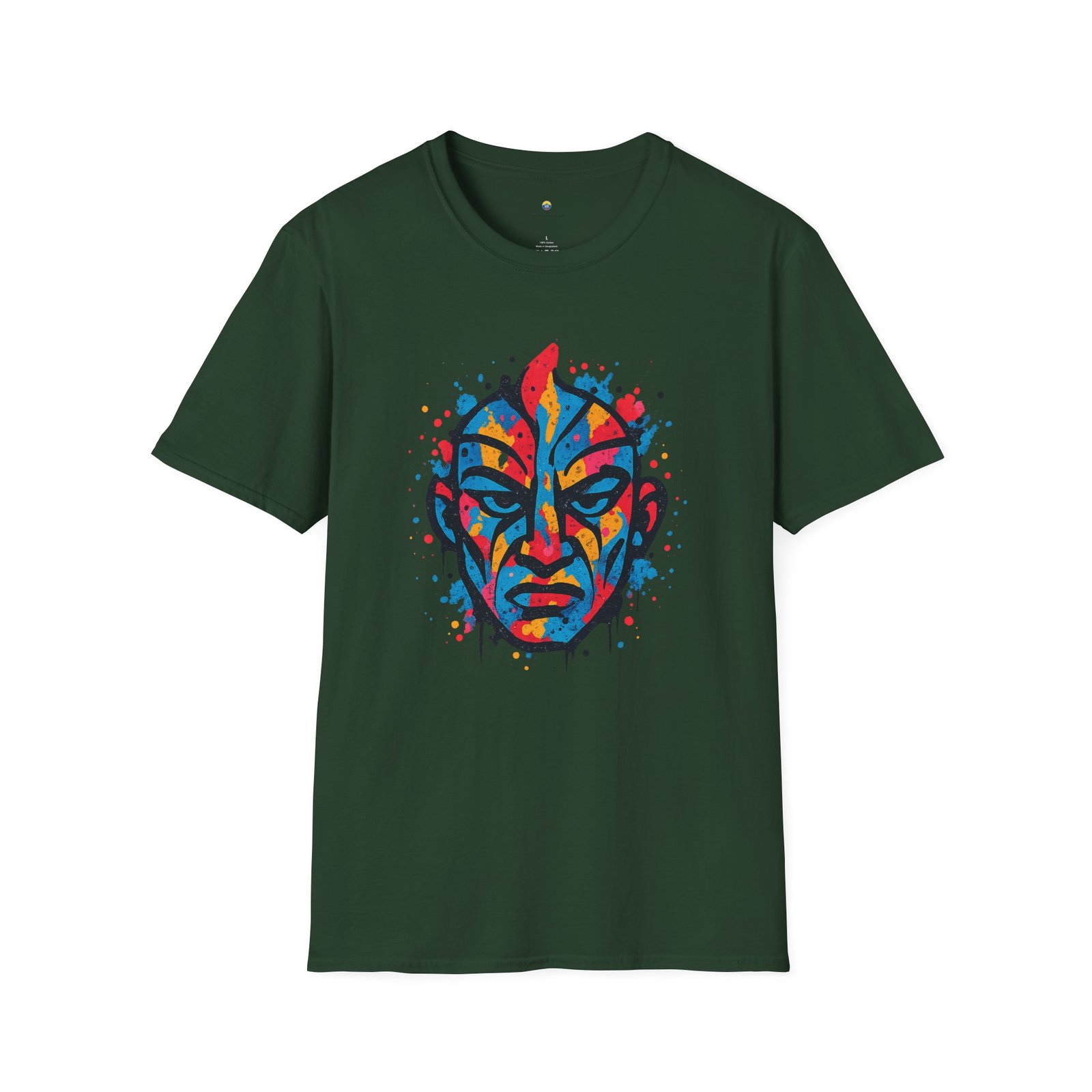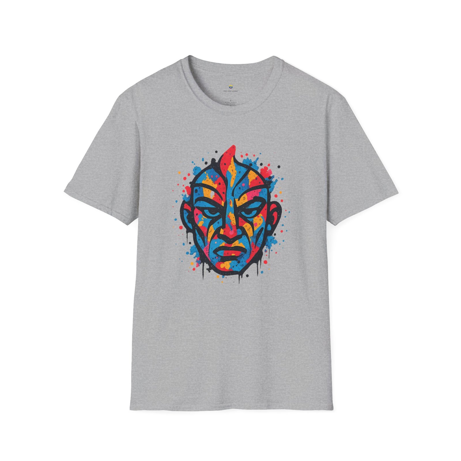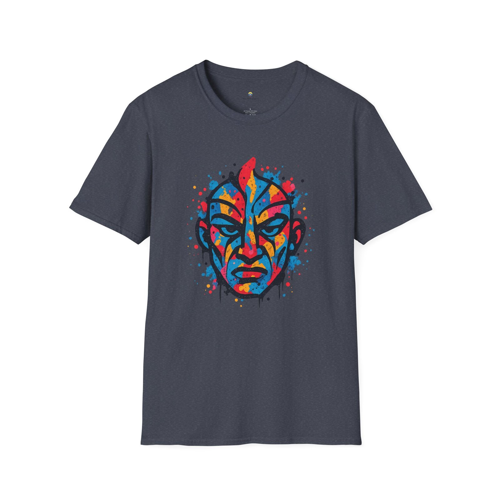 Affirme ton style avec ce T-shirt Unisexe “Urban Soul”, un design explosif mêlant art urbain, influences tribales contemporaines et énergie brute du street art. Au centre, un visage intense et expressif se dévoile à travers des éclaboussures dynamiques de bleu, rouge, jaune et orange, créant une composition vibrante à l’impact visuel immédiat.